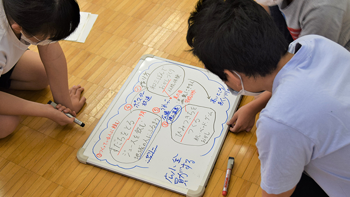 - 小学校では「友達と楽しめる秘密基地が欲しい」「神山を舞台にしたヒーローアニメを考えたい」など、思いも付かないようなアイディアが飛び出します。